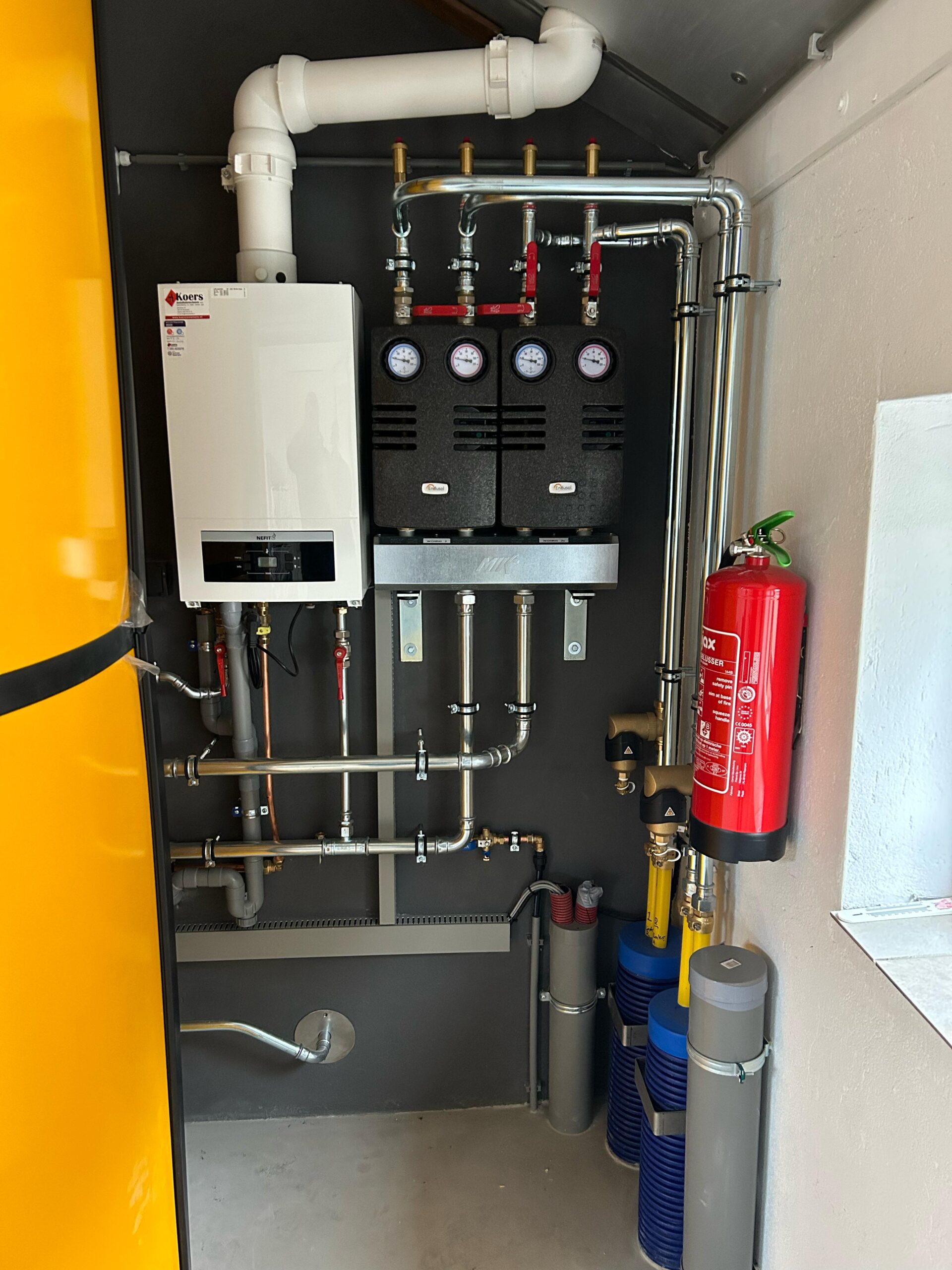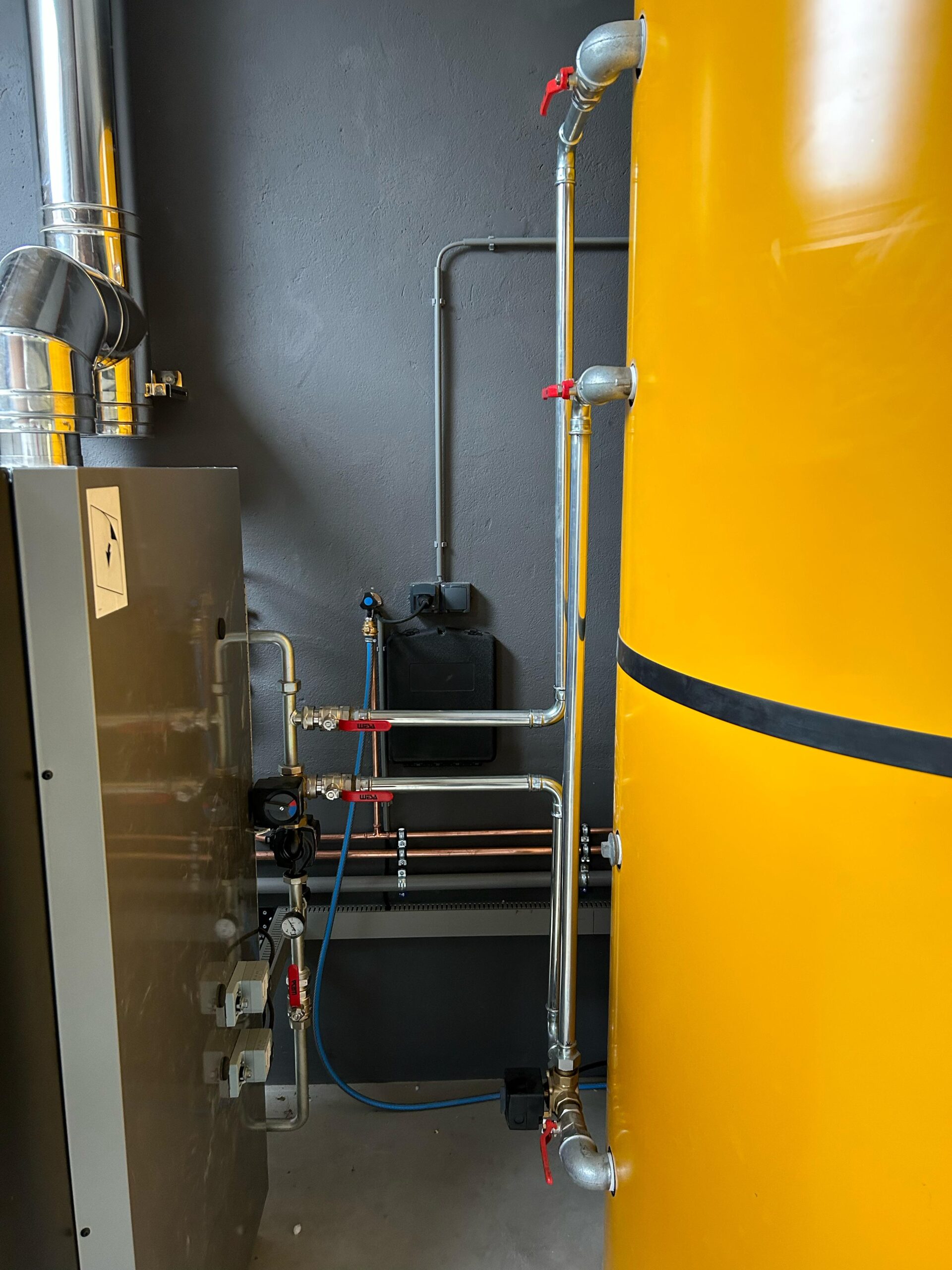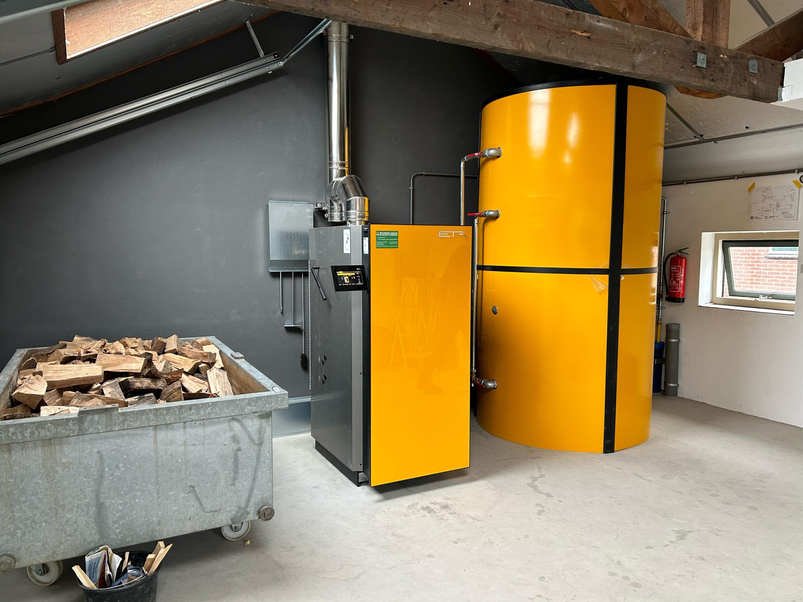 In Klarenbeek is door ons een 40kW houtvergasser geleverd. Deze is gekoppeld op een 3.000ltr gelaagd buffervat en voorzien van 2 cv-groepen. Middels voorgeïsoleerde terrein leidingen wordt een dubbele woonboerderij verwarmd. Beide woningen hebben inpandig een eigen boiler. Als back-up is er een kleine gasketel op propaan gekoppeld op de installatie.